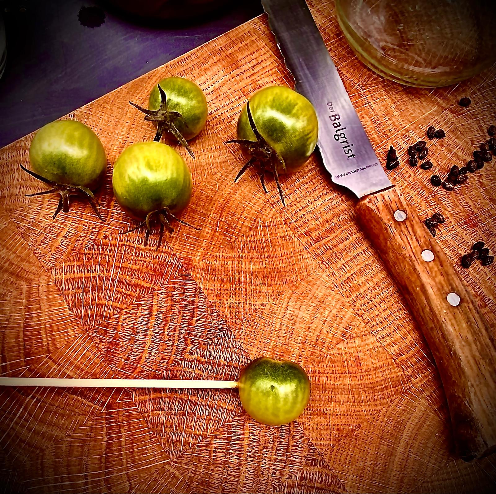 2. In der Zwischenzeit wasche dein deine Tomaten gründlich und steche mit einem Zahnstocher 3-4 mal in die Tomate ein damit sie nicht platzt während der Fermentation.
