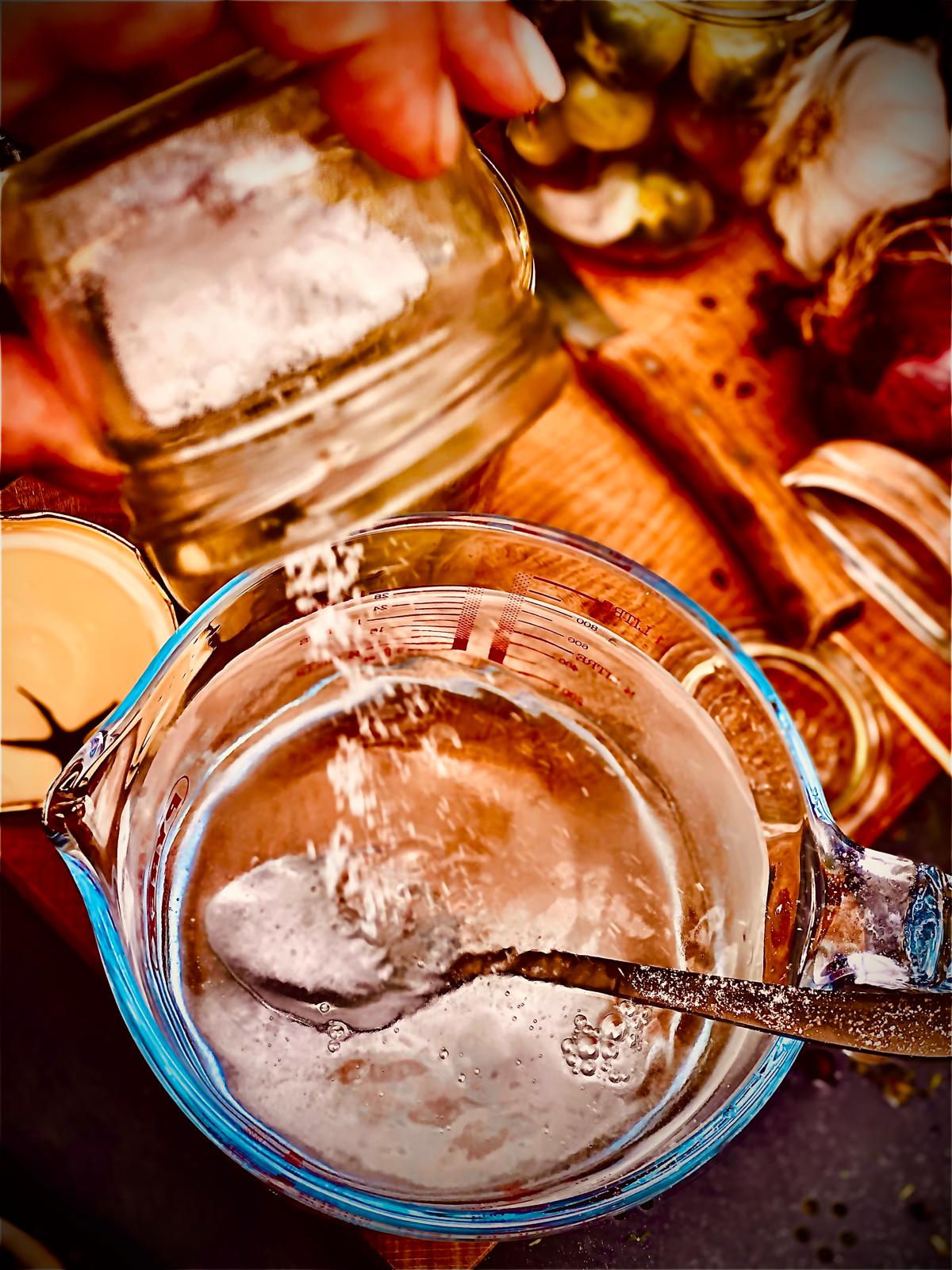 1. Koche das Wasser auf und füge das Salz unter ständigem rühren hinzu.